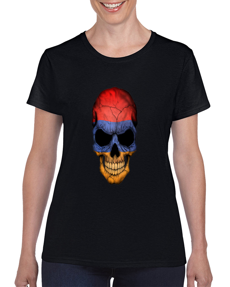 Armenian Flag Skull Ladies T Shirt
